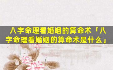 2、八字 🐧 命理看婚 🌺 姻的算命术是什么