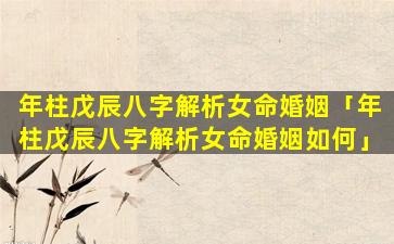 3、年柱戊 🌵 辰八字解 🌾 析女命婚姻状况
