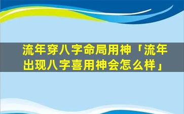 2、流年出现八字 🕷 喜用神会 🌵 怎么样
