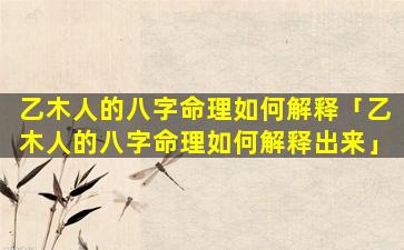 2、乙木 🦟 人的八字命理如何解 🐧 释出来