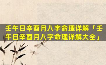 壬午日辛 🐝 酉月八字 🐺 命理详解大全