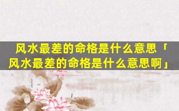 2、风水最差的 🦟 命格是什么 🐅 意思啊