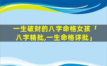 1、一生破财的八字 🌼 命格 🐘 女孩