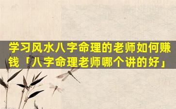 1、学习风水八 💮 字命理的老 🕷 师如何赚钱