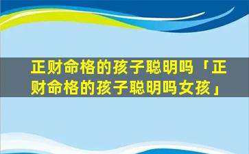 1、正财命格的孩 🦊 子聪 🐶 明吗