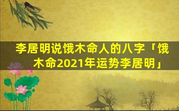 1、李 🌷 居明说饿木命 🕸 人的八字