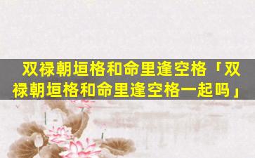 2、双禄朝垣格和命里逢空 🦈 格一起吗