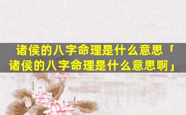 1、诸侯的八字命 🦟 理是什么 🍀 意思