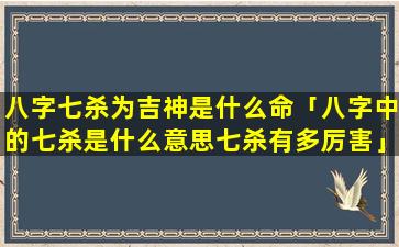 4、八字七杀为吉神是什 🐯 么命运 🐎