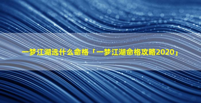 2、一 🐟 梦江湖命格攻略 🐕 2020