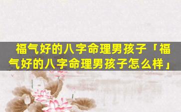 福气 🌷 好的八字 🦉 命理男孩子特征: