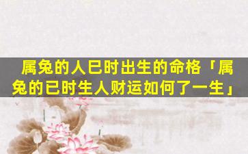 4、属兔的人巳时出生的 🌿 命格怎么样 🐒