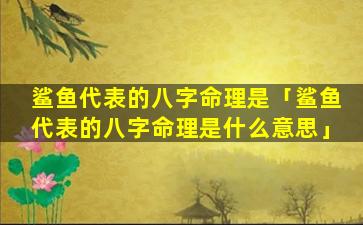1、鲨鱼 🐧 代表 🦈 的八字命理是