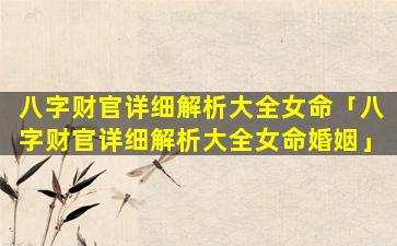 3、八字财官详细解 🌴 析大全 🐧 女命格