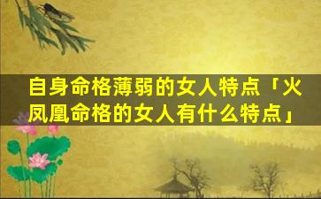 自 🌾 身命格薄弱的女性 💐 特 🐼 点