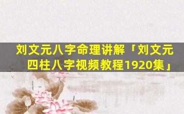 4、刘文元八 🐟 字命理讲 🐺 解视频全集