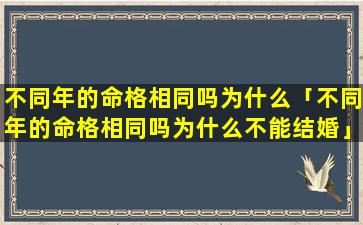 2、不 🦢 同年的命格相同吗为什么不能结 🪴 婚