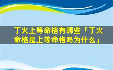 丁火命格是否为上等命格取决于具体八字格局。如果满足 🌴 上述条件 🐵 ,则,有。可能是上等命格但需要结合八字通盘分析来判断