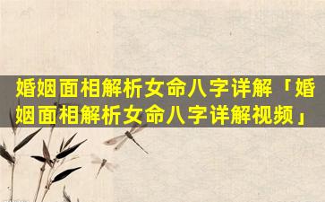 婚 🌴 姻面相解析女命八字详解大 🦈 全