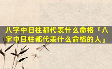 2、八字中日柱都代表什么命格 🌺 的 🐕 人