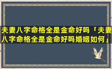 1、夫妻八字命格全是金命好 🐋 吗 🦍