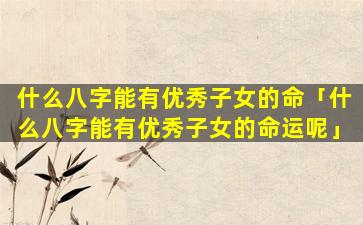 3、什么八 🌵 字能有 🐟 优秀子女的命格呢