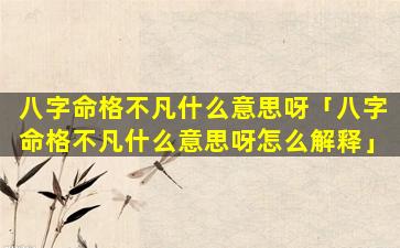 2、八字命格不凡 🍀 什么意思呀 🦍 怎么解释