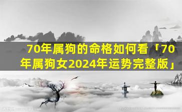 2、70年 🍁 属 🐈 狗女年2024运势完整版