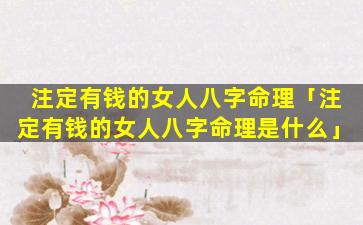 2、注定有钱的女 🐠 人八 🦆 字命理是什么