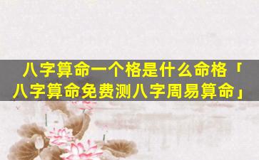 1、八字算命 🕊 一个格是什么 🐱 命格