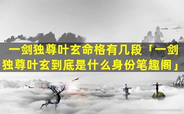 1、一剑独 🐧 尊 🐒 叶玄命格有几段
