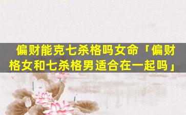 2、偏财格女和七杀格 🦁 男适合在一起吗