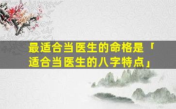 1、最 🐵 适合当医生的命格 🐬 是
