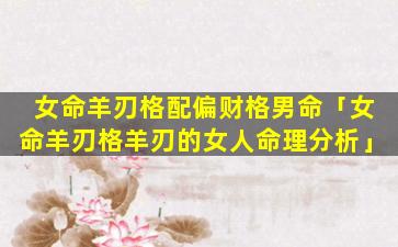 1、女命羊 🌹 刃格配偏财格男命 🐯
