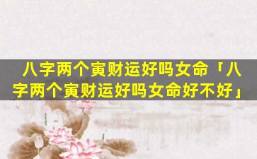 3、八字两个 🌿 寅财运好吗女命婚姻
