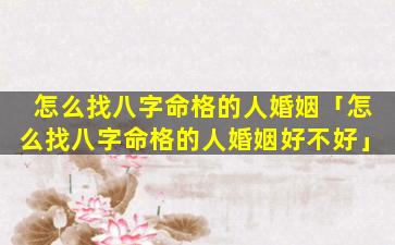 4、怎么 🕸 找 🐺 八字命格的人婚姻结果