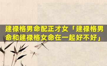 总体而言,建,禄格男命配正才女是一个较为理想的婚配 🌴 组合但具体吉凶还需要结合八字的整体格局和岁运影响来判断。