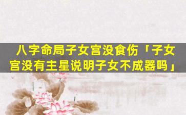 「子女宫 🐴 没有主星」并不直 🕸 接代表子女不成器子女宫。是命盘中掌管子女相关事项的宫位,其中是,否有主星,以,及有。哪颗主星 🐎 只能提供一些参考信息不能完全说明子女未来的成就与品德