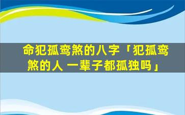 命犯孤 🌾 鸾煞的 🐝 八字特征 🐱