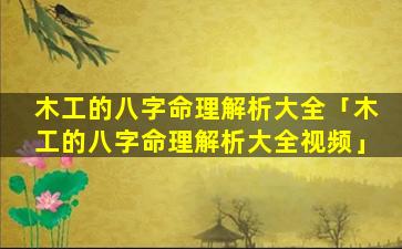 2、木工的八 🕷 字 🐕 命理解析大全视频