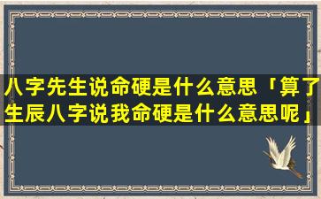 1、八字先 🐘 生 🐒 说命硬是什么意思