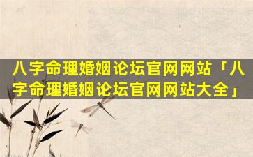 3、八字 🐵 命理婚姻论坛官网网站查询