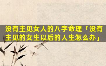 2、没有主见的 🐺 女生以后 🌷 的人生怎么办?