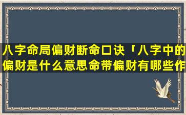 4、八字命局偏财断 🦋 命口诀详解 🦆