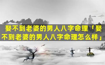 2、娶不 🌼 到老婆的男人八字命 🐠 理怎么样