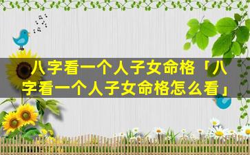 2、八字看一个 ☘ 人子女命格怎么看