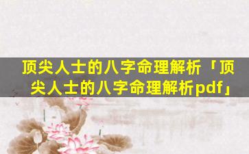 2、顶尖人士的 🌼 八 🌺 字命理解析pdf