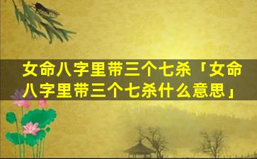 3、女命八字里带 🕊 三个七杀代表 🦟 什么