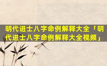3、明代进士八字命例解释 🦁 大 💐 全图片
