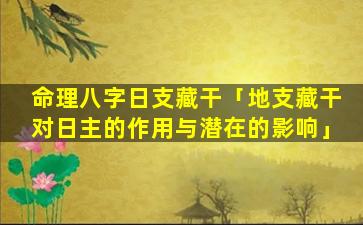 2、地 🍀 支藏干对日 ☘ 主的作用与潜在的影响